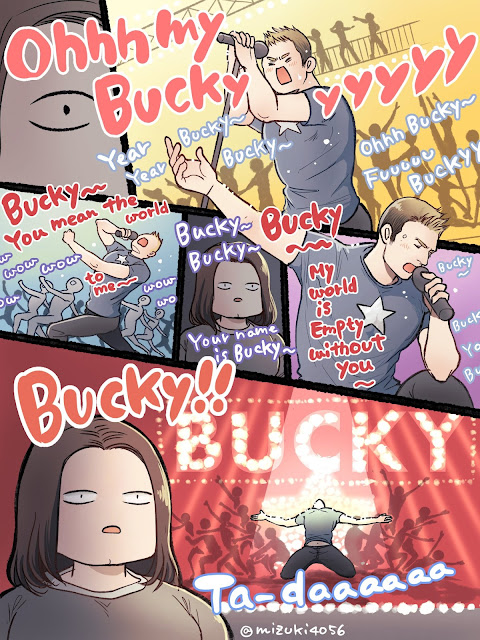 See that sign there??? The missing words behind the yellow sign are “Bucky Barnes” making it the truest most romantic musical ever in Broadway: